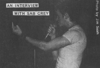 Sab Grey interview from Maximum Rock N Roll 11 (the "Welcome to 1984" issue). Interview conducted by Tim Yohannon.