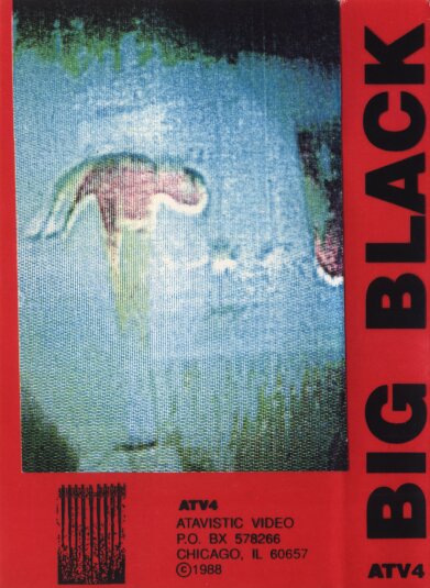 ...since I don't actually own a VCR, and have never watched MTV, my experience with the video form has been pretty limited. But after a blow-out weekend just spent watching about ten hours of the crap, I've come to coupla conclusions. One, is that the TV monitor sound is fuckin' great. So greatly limited by the mechanics of the setup, bass response is eliminated, high volume is impossible, and what you get is this incredible, highly condensed, trebly blast that greatly distorts the band's real intent and throws technology right out the window, in turn creating a whole new audibility outlook. In this age of sophisticated sound, it's really pleasing to hear something so helplessly non-conformist. I'm sure this will be dealt with in our lifetime, so enjoy this shit before technology rears it's ugly head to "fix" everything up. Second, it's a heckuva a dull affair to watch through the eyes of some dump shit camera man as he stares at band shitting through their full set for 45 minutes or more. Being a trio, where each member's gotta be concerned with holding up their third, Big Black are especially prey to this lack of excitement factor. Some of the color processing and variable speed film fuck-arounds add interest, but this's a bit inferior to the Sonic Youth video also on Atavistic and quite a step below either a record, or an actual gig. This one does have one tremendous moment though, when our man-tit hero TKA (from the OFFENSE newsletter) jumps on stage during the version of "Rema-Rema" and moons Albini, showing off his famed "Ivo" tattoo. 'Twas well worth the wait.