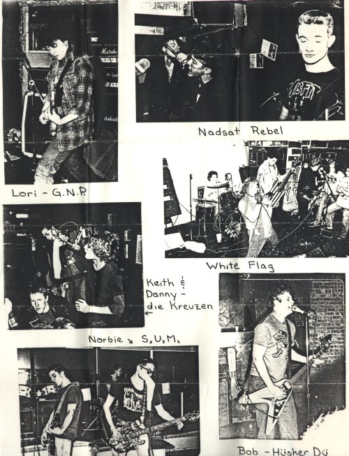 Side two brings us one of the U.S.'s tightest HC bands in die KREUZEN. All three tracts are from practice sessions and were recorded on a "boom box". OUT OF ORDER are one of Chi-town's newer bands, but by the cuts from their demo it's hard to tell. Having played out only a few times, they have received a lot of favorable responses. NAKED RAYGUN have one of the few studio cuts and it's easy to see why NR have been a staple in the Chicago scene for many years. BIG BLACK give us a scenario of "Texas" live which is on the new album. Next up are those love 'em or hate 'em boys from Wisconsin: SACRED ORDER. So give these dankin' guys a listen and decide. The live cuts from HUSKER DU were recorded in Arizona on a '82 tour. FLESH COLUMNS finish Code Blue for us with two cuts from recent studio sessions which their new 45 came from.